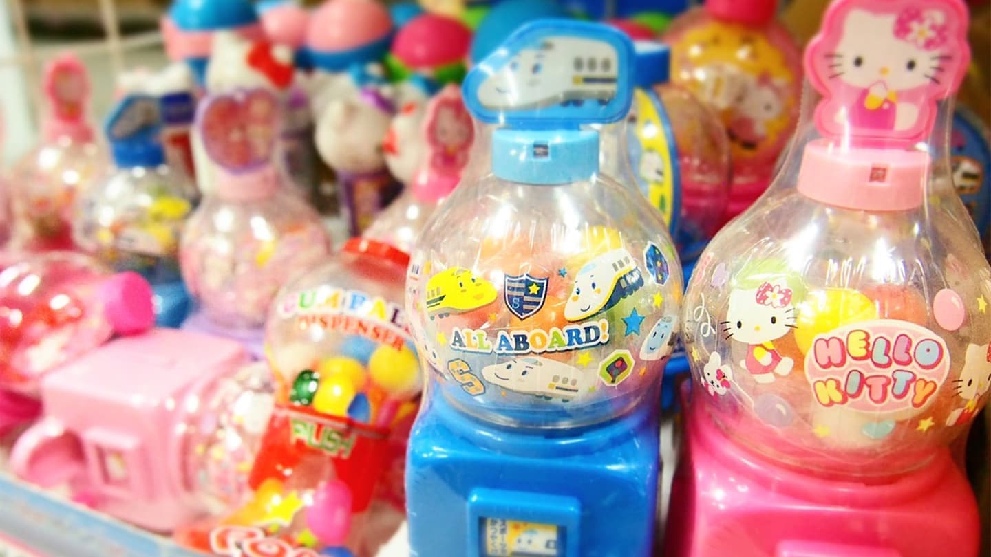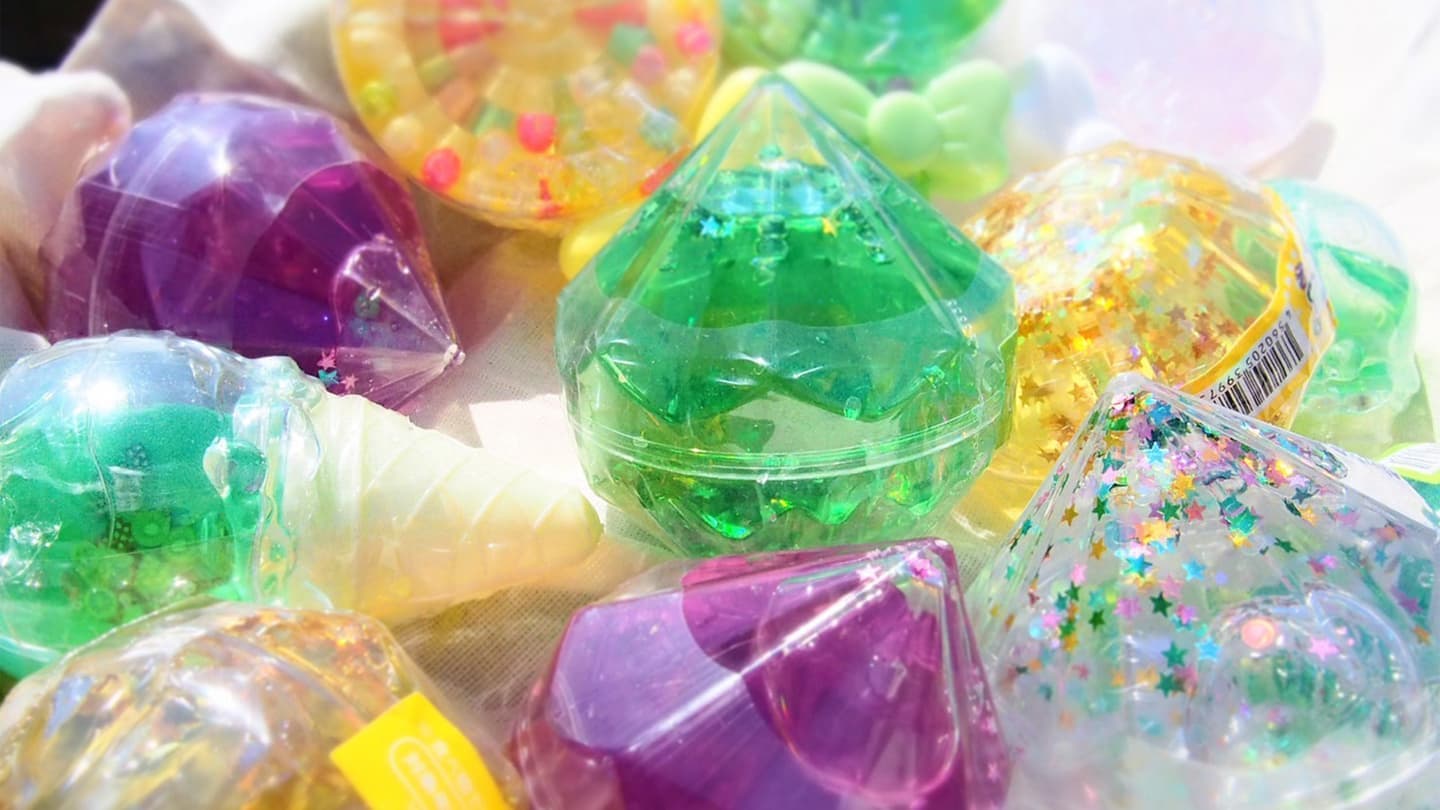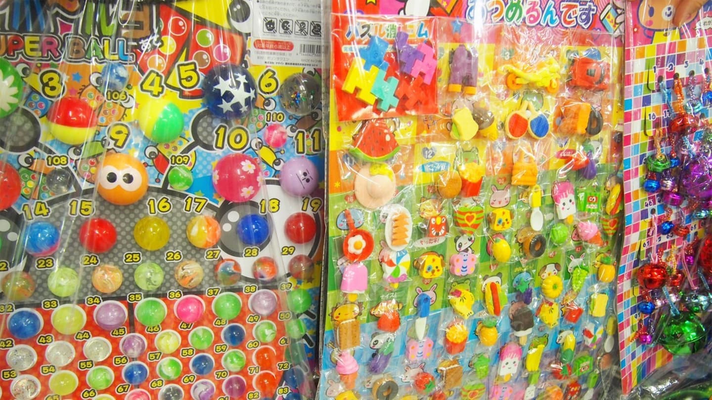人気のキャラのおもちゃ・懐かしいおもちゃ(スライム・スーパーボール・めんこなど)・シールやキラキラ指輪もあります。