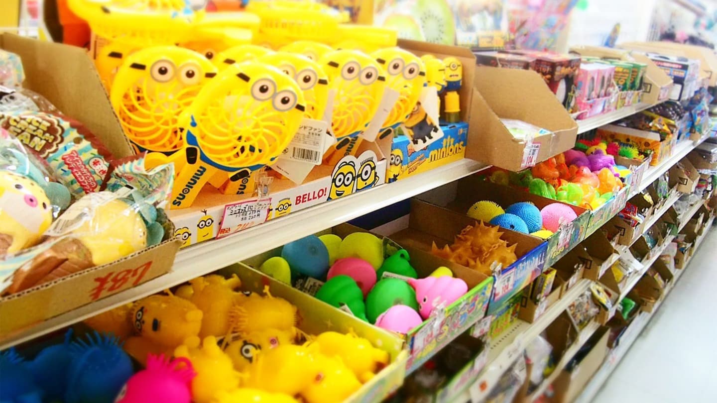 お子さんと遊べるおもちゃやプレゼントが50円〜ご購入いただけます。もちろんパーティー用サイズも揃えていますよ♪